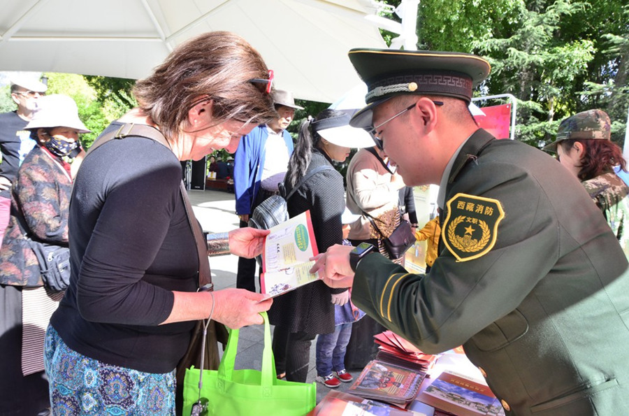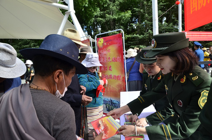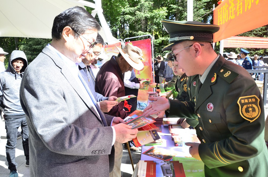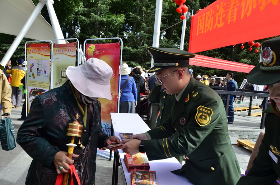 西藏公安消防总队通过悬挂“国防连着你我他,安宁维系千万家”横幅标语、展示国防教育和消防知识宣传展板、播放国防教育和消防安全教育宣传片、发放国防教育和消防安全宣传画册及资料、现场解答国防和消防知识疑问等方式,认真开展了宣传活动。