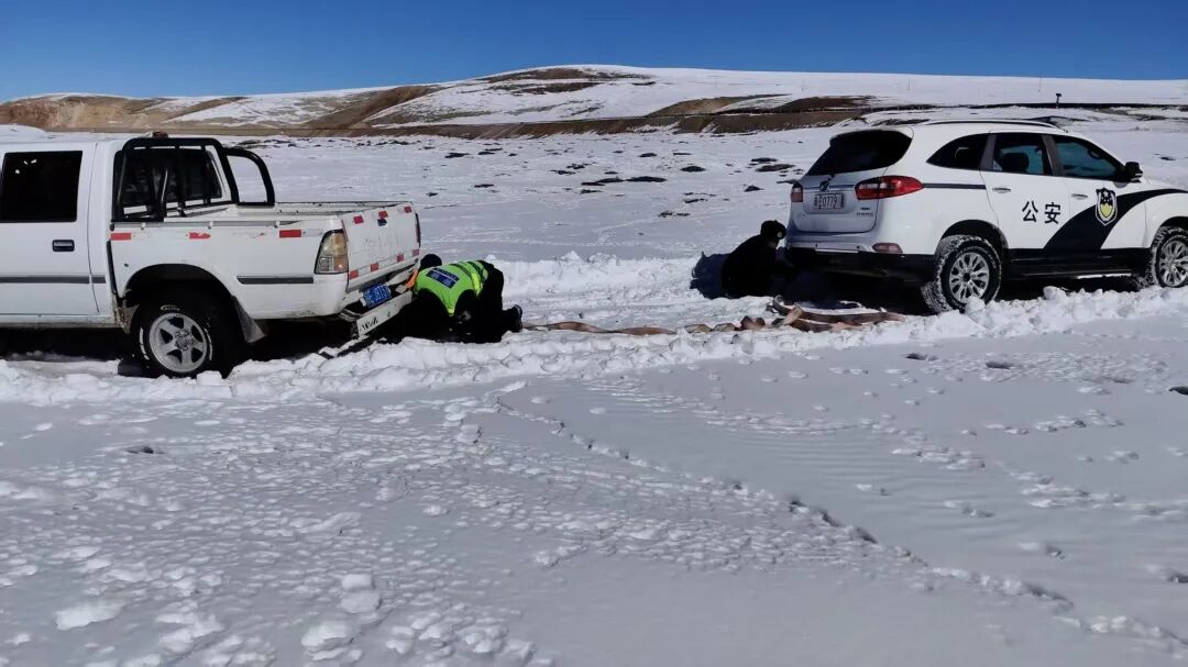 11月20日,那曲市申扎县公安局塔尔玛二级公安检查站闻警而动,连续作战,在极端恶劣的自然条件下,成功救助两台被困车辆及多名群众。