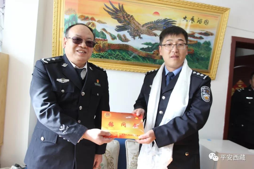 暖警心,扬正气。慰问组一到西藏,顾不上休息,克服高原反应带来的头痛、胸闷等困难,立即奔赴山南市公安局特警支队走访慰问,鼓励大家在打击犯罪、维护稳定、服务人民等方面继续努力,同时叮嘱大家注意身体、注意安全。在拉萨市尼木县公安局卡如一级检查站,慰问组与执勤民警逐一握手,询问工作生活情况,现场体验民警安检工作过程。因公负伤民警、高海拔地点民警的工作生活情况怎么样,一直牵动着慰问组的心。在拉萨市公安局堆龙德庆区公安局乃琼乡派出所,得知民警郭超因抓捕犯罪嫌疑人导致腿部骨折造成四级伤残,慰问组走进其家中详细了解生活工作情况,询问有没有什么困难,勉励他进一步坚定信心,保重身体,快乐工作,幸福生活。