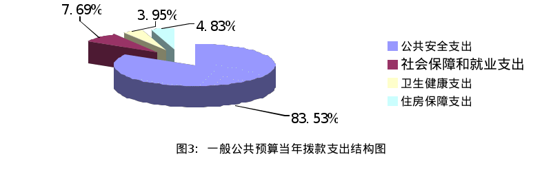 2026年部门预算中,一般公共预算当年拨款用于以下方面支出:公共安全支出40,529.22万元,占83.53%,社会保障和就业支出3,729.52万元,占7.69%,卫生健康支出1,916.07万元,占3.95%,住房保障支出2,343.99万元,占4.83%。