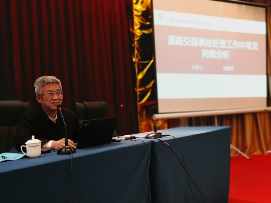 为进一步提升全区交通事故处理民警执法能力和执法水平,进一步规范交通事故处理工作,不断推进交通事故处理执法规范化建设,经报自治区公安厅主要领导批准,近日,公安厅交管局在拉萨市举办了为期3天的道路交通事故处理业务培训班,对全区各级公安交管部门交通事故处理岗位的91名民警开展了培训,培训效果显著,达到预期目标。培训选定了6项与基层业务关系密切的课题和交通事故现场安全防护、现场勘查等作为培训的重点内容,对参训民警资格进行审核把关,并邀请了公安部道路交通安全研究中心博士孙广林、公安部交通管理局无锡科研所助理研究员赵冬和中国人民公安大学教授刘建军等优秀专家授课。