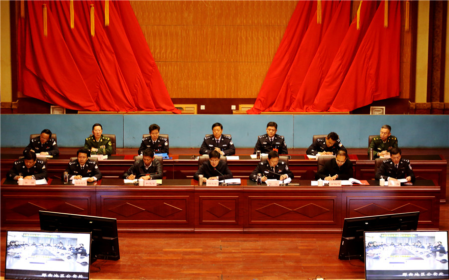 刘江同志在工作报告中认真总结了2016年全区公安工作,深刻分析了当前西藏公安工作面临的形势,并从突出做好党的十九大维稳安保工作、夯实公安基层基础建设、强化防控措施、推进公安改革、加强队伍建设等方面对2017年全区公安工作进行了部署强调。