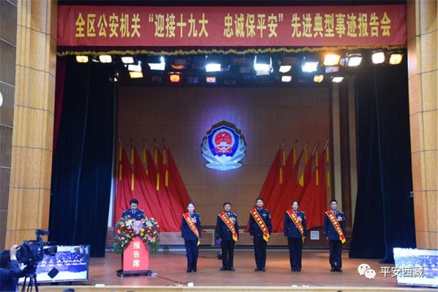 10月6日,全区公安机关“迎接十九大 忠诚保平安”先进典型事迹首场报告会在公安厅警察活动中心举行。自治区副主席、区党委政法委副书记、公安厅党委书记、厅长刘江同志出席报告会。公安厅党委副书记、常务副厅长洛桑旦达同志主持报告会。区党委组织部、区党委宣传部、区党委政法委、区直机关工委,区高法、区检察院、区安全厅、区司法厅、区财政厅、区人社厅、区文化厅有关领导同志和公安厅在家厅党委委员以及公安厅厅直各部门、拉萨市公安局、公安现役部队、行业公安机关民警代表、西藏警官高等专科学校学员代表共400余人在公安厅主会场聆听报告。